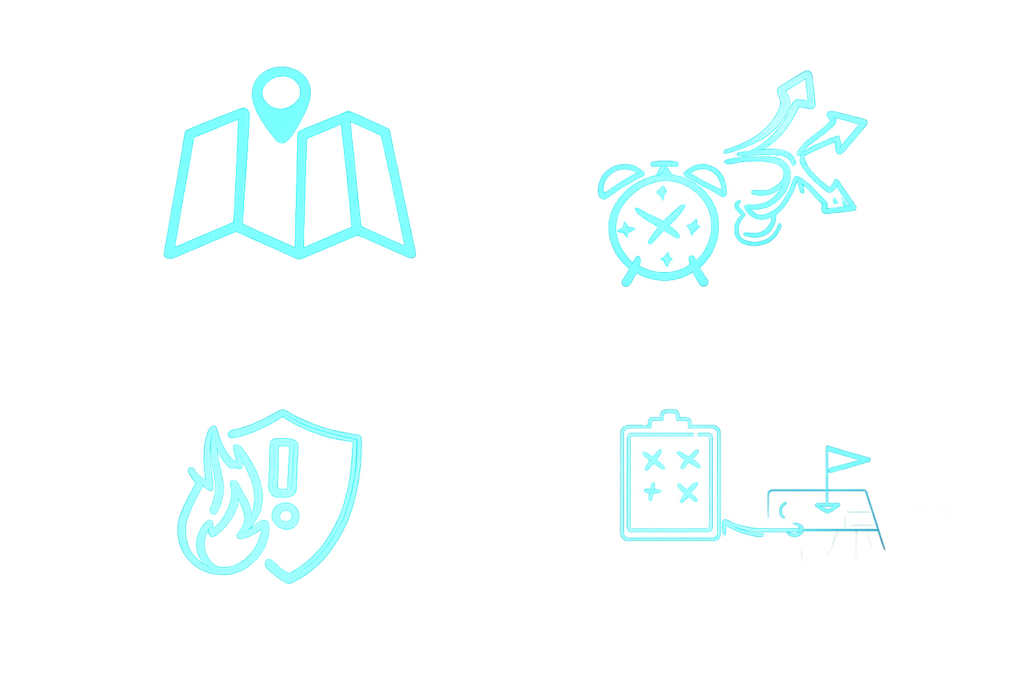 Ohne gemeinsame Orientierung starten Einsatzkräfte mit unterschiedlichen Annahmen und Zielbildern. Maßnahmen laufen parallel, aber nicht zwingend abgestimmt – Führung verliert früh an Steuerungsfähigkeit.